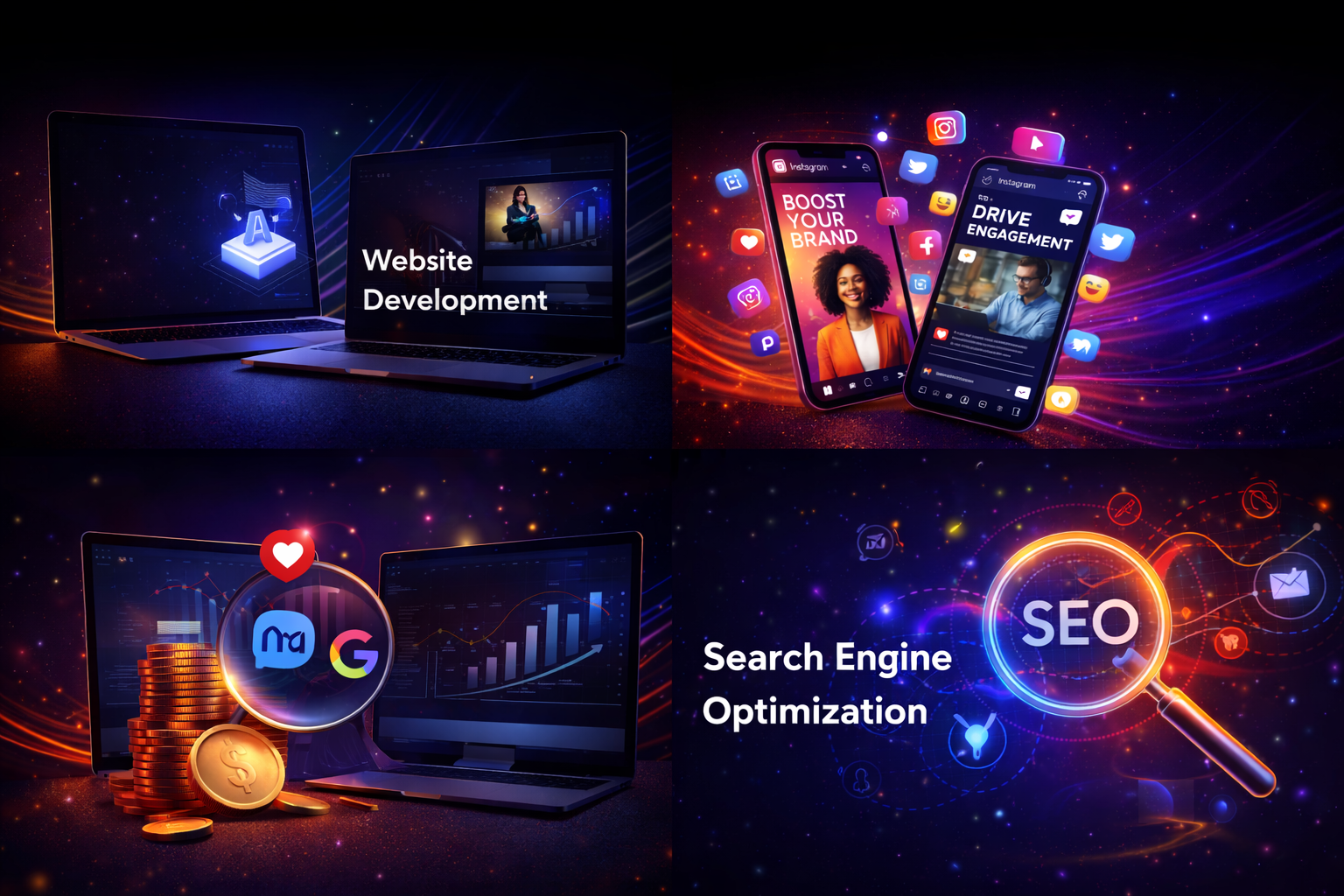 We build business websites, e-commerce stores, landing pages, portfolio websites, and custom web solutions. All our websites are fast, secure, responsive, and designed for conversions.